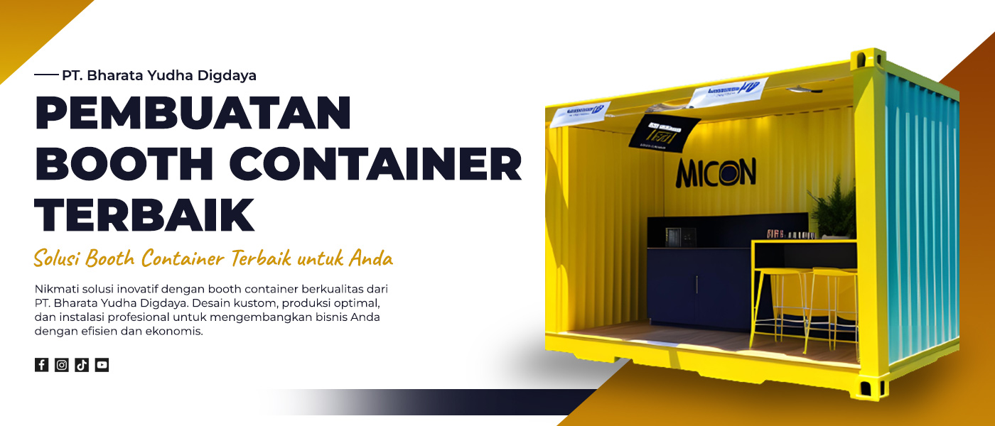 PT. Bharata Yudha Digdaya adalah perusahaan terkemuka di Indonesia yang menyediakan jasa pembuatan booth container. Kami berdedikasi untuk memberikan solusi inovatif dan berkualitas tinggi dalam desain, produksi, dan instalasi booth container yang disesuaikan dengan kebutuhan unik setiap klien. Dengan pengalaman dan keahlian yang luas di industri ini, kami siap membantu Anda mengembangkan bisnis dengan cara yang efisien, ekonomis, dan ramah lingkungan.